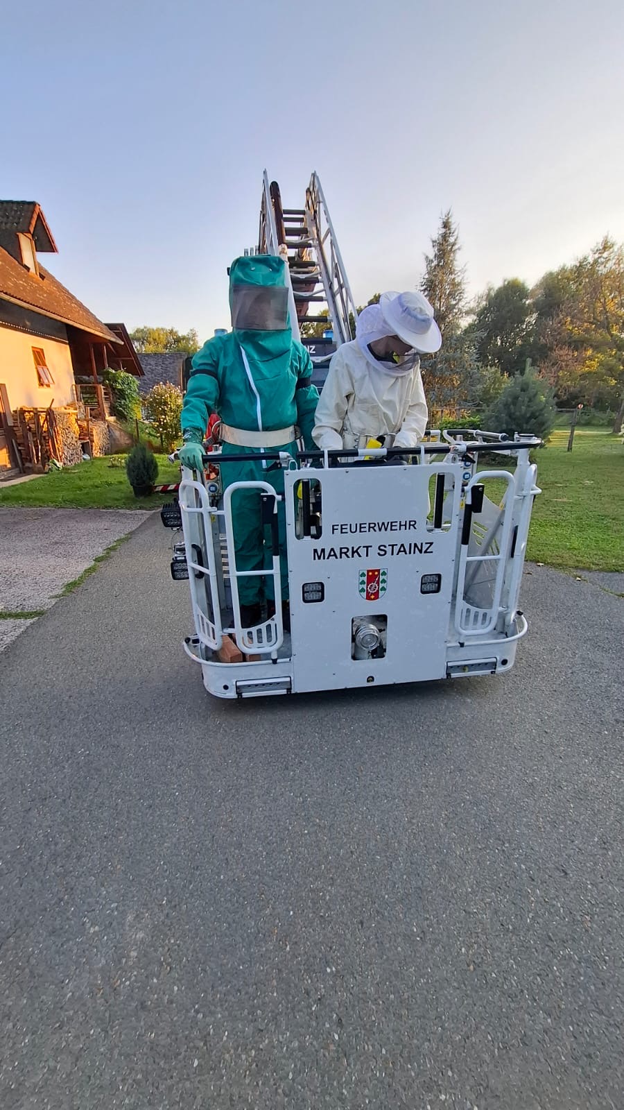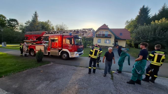 Gemeinsam mit der Drehleiter der Freiwilligen Feuerwehr Stainz konnten wir ein Insektennest bei einem Kameraden der Freiwilligen Feuerwehr Stallhof sicher entfernen.